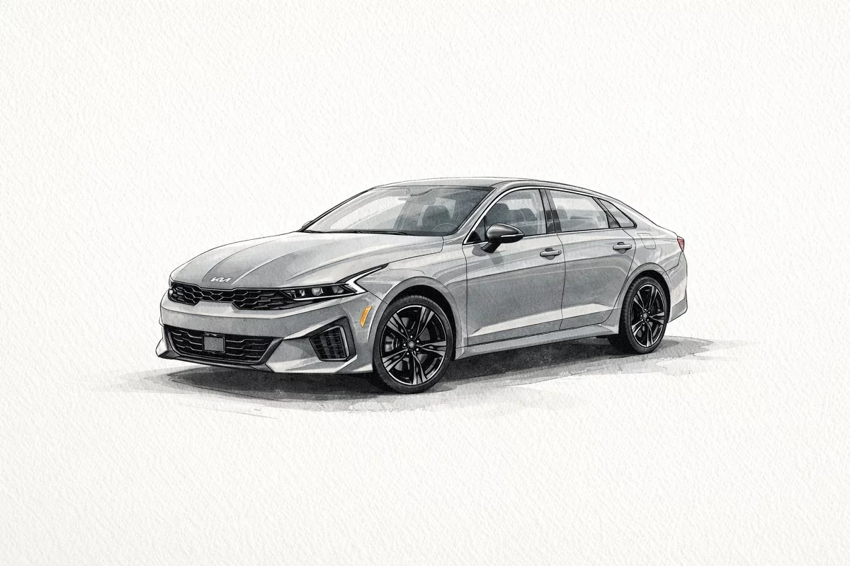 Meet the 2026 KIA K5 GT-Line — finished in sleek Gray with a refined Black interior. This sporty sedan pairs confident handling (235/45R V run‑flat tires, 4‑wheel ABS, independent suspension and vehicle stability/traction control) with comprehensive safety (multiple airbags, child door locks and vehicle anti‑theft). Enjoy everyday comfort and convenience like keyless entry with remote start, dual‑zone climate controls, heated exterior mirrors, steering‑wheel controls and a tire‑pressure monitor. Backed by Kia’s strong warranties — 60 months/60,000 miles basic and an industry‑leading 120 months/100,000 miles powertrain — it’s a smart, stylish choice. Stop in today and take it for a test drive.